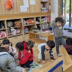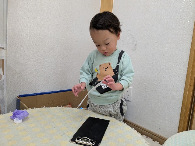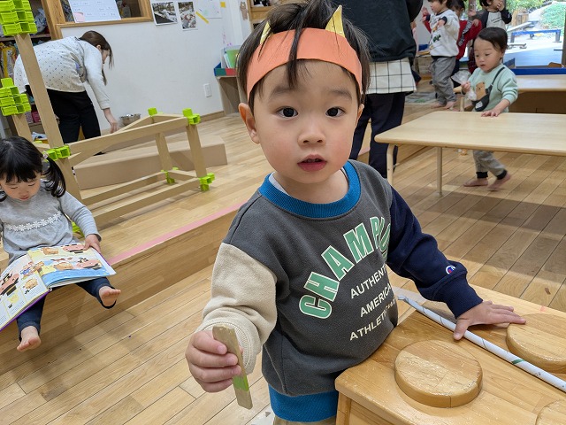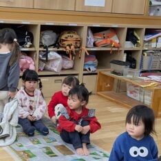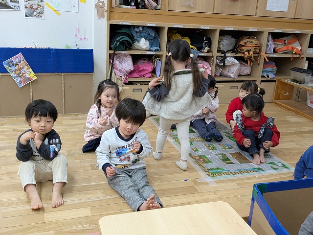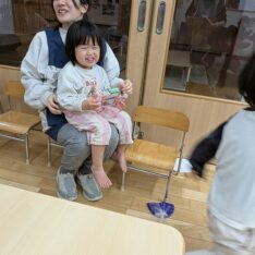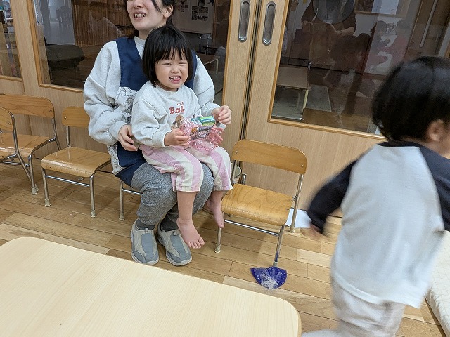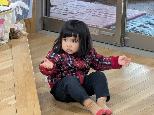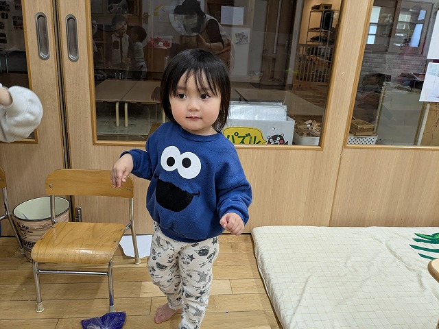 2026.02.25 Wed カテゴリ: R7.2.25もも 今日は少し雨が降っていたので室内で過ごしました。ホールで追いかけっこをしたり、お部屋にソフト滑り台を出すと順番にお友達と滑ったり、転がったりして遊んでいました。
