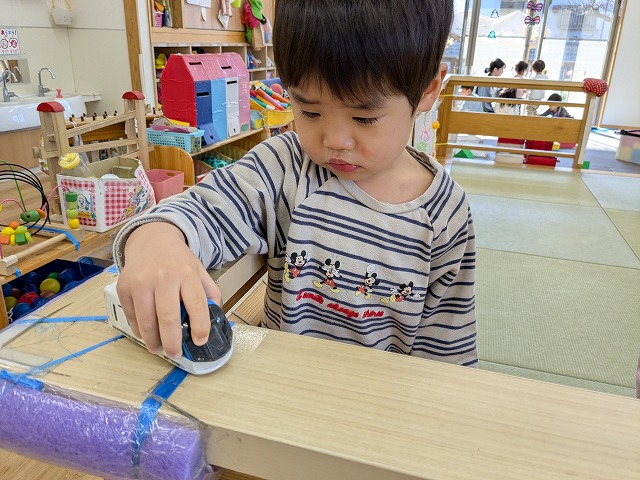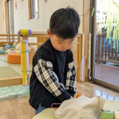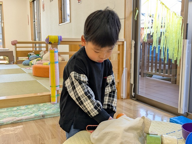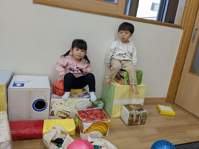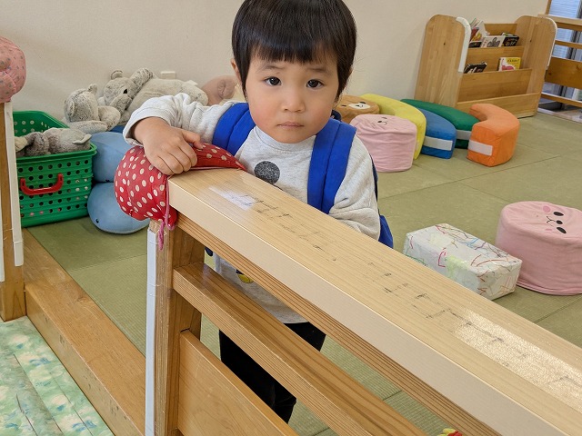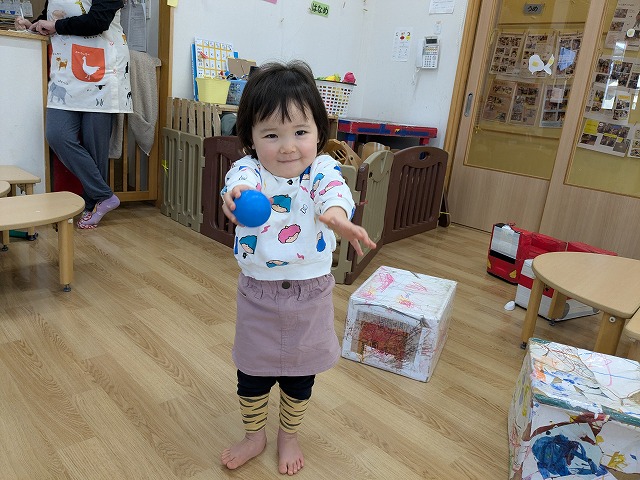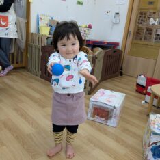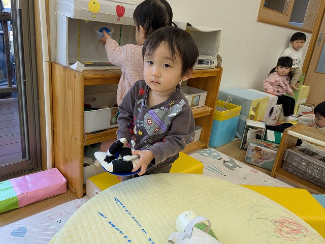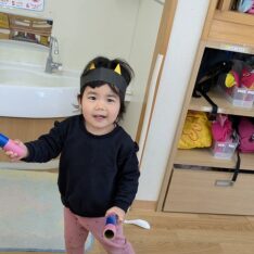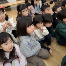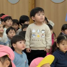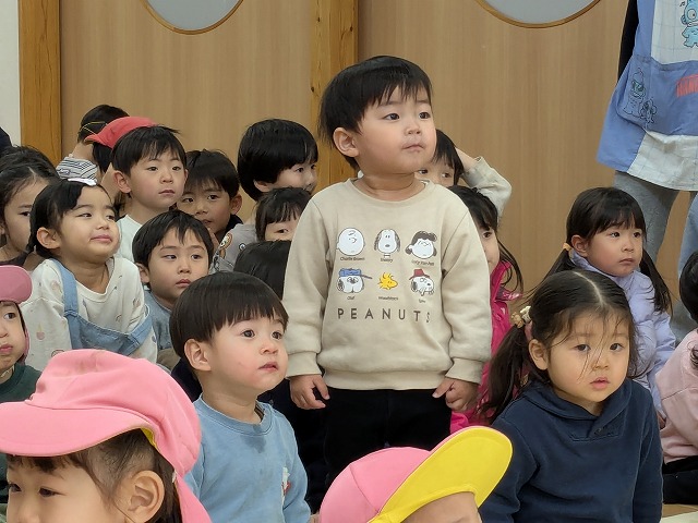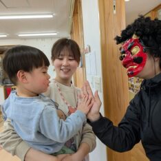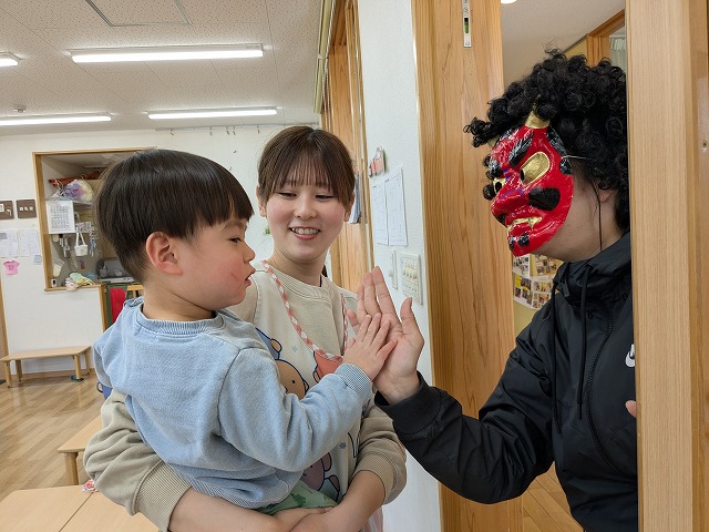 今日は、節分集会がありました。ホールで節分についてお話を聞いた後に大きい園庭に行きました。オニが来て、驚いて泣いてしまいましたが、泣きながらもオニとハグしているお友だちもいました。最後は、みんなでおにのパンツを踊りました。
