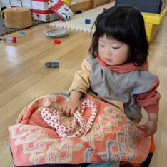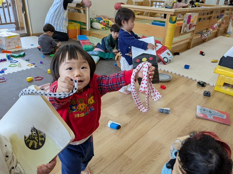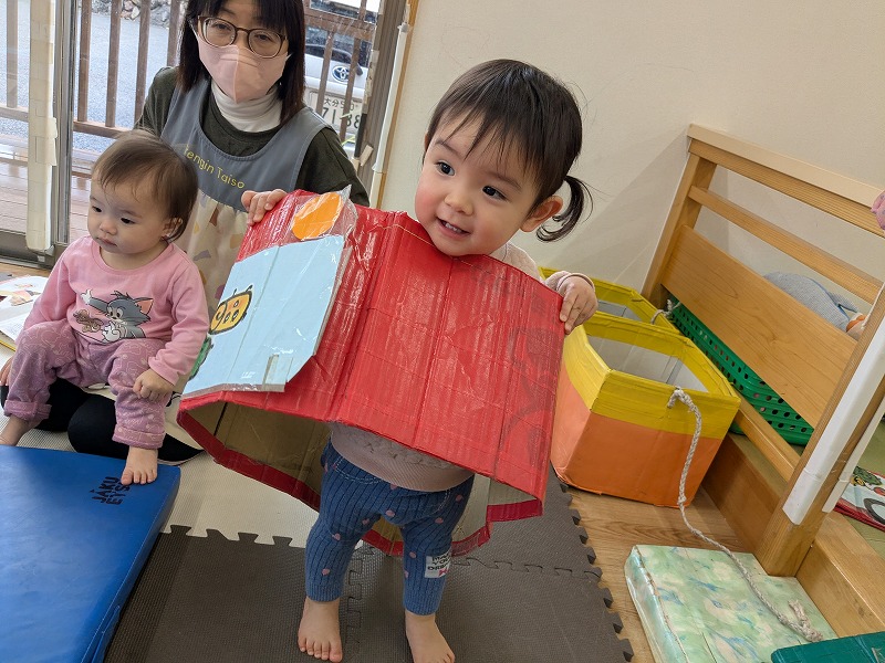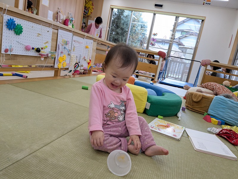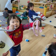 2026.03.03 Tue カテゴリ: R8.3.3はなめ 今日は、室内で過ごしています。保育者と一緒にバスに乗ってやいぬのおまわりさんの手遊びをしながら触れ合い遊びをしたり、興味のあるオモチャに手を伸ばして遊ぶ姿がありました。