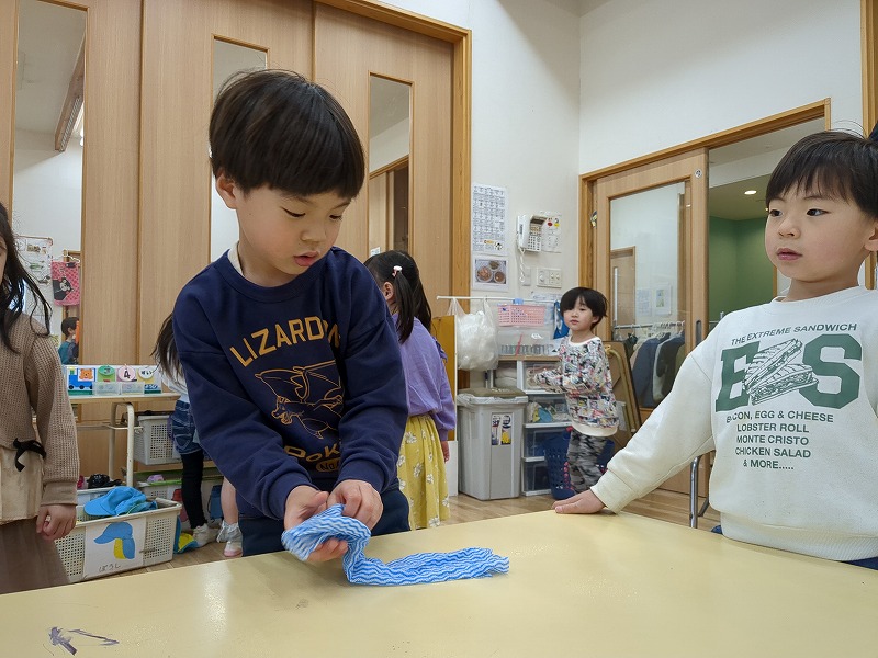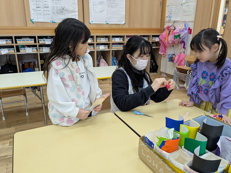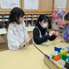 2026.03.04 Wed カテゴリ: R8.3.4うめ 今日は、お部屋で製作をしたり、カードゲームやお家ごっこをして遊びました。製作では、モールを使って花を作ったりしてかわいく飾り付けをしていました。